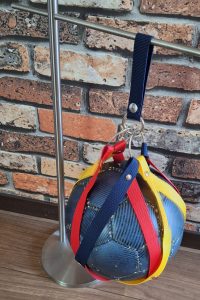 ナイロンのストラップで製作。好みのカラーでオリジナルのボールケースになります。